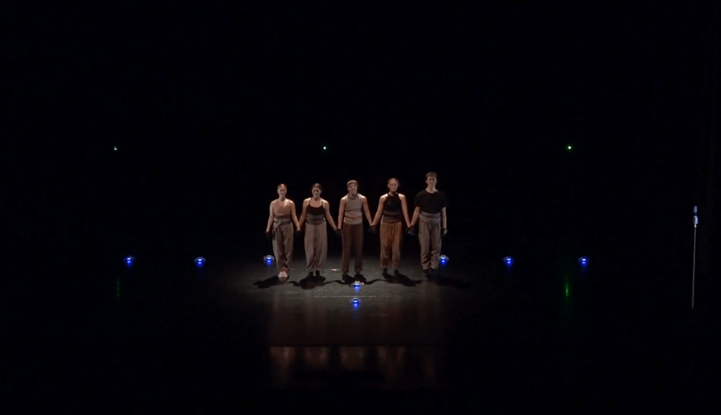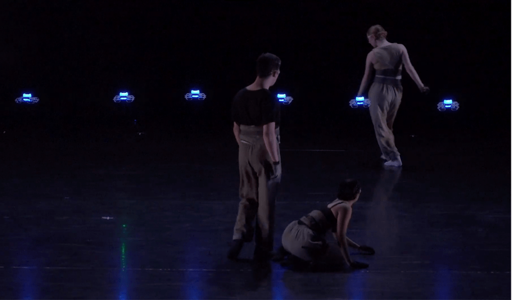 The piece is structured in three acts, each designed to create a different kind of pressure for the dancers. The opening section establishes mystery — dancers gesture, discover, start to understand the world they’re in. The middle section becomes a game of evasion and intensity as drones and dancers compete for space. The final section — what Handman calls an “ethereal tornado” — moves toward harmony.